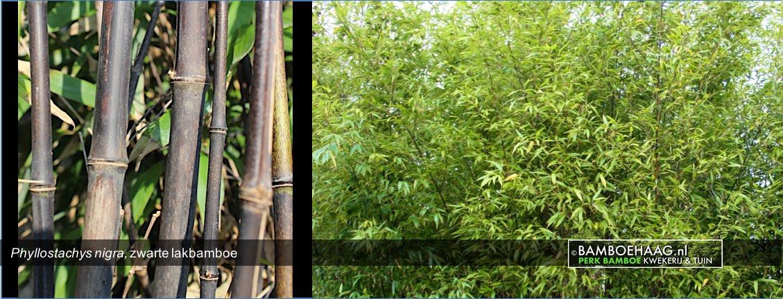 is de veel gezochte zwarthalmige bamboe. Wordt ook wel Japanse zwarte lakbamboe genoemd. Deze soort kan meer dan vijf meter hoog worden, maar blijft in ons Noord-Europese klimaat over het algemeen lager, ongeveer 3 tot 4 meter met een neiging tot overhangen. Ten zuiden van Parijs toont nigra meer van haar groeipotentieel. Deze soort kan worden gesnoeid tot de gewenste hoogte.