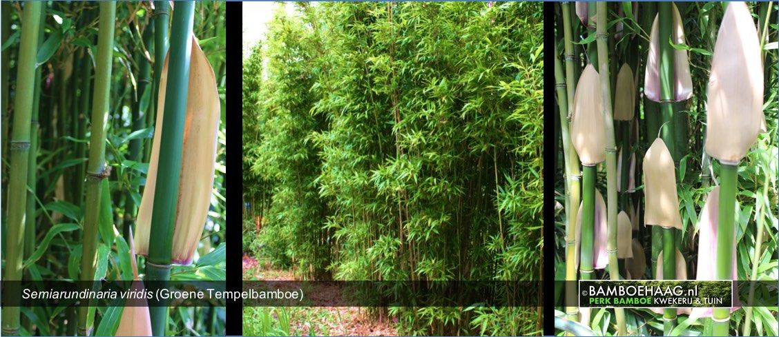 wordt gekenmerkt door tamelijk dikke, stijve, rechtopstaande halmen met korte takken en vrij grote bladeren. Dit creëert een natuurlijke zuilvorm. Het maakt deze soort geschikt voor hoge compacte hagen. De stilistische vorm past ook goed in het moderne tuinontwerp. Semiarundinaria viridis heeft diepgroene halmen. Deze soort kan opgroeien tot 4 - 7 meter hoog, is winterhard en geschikt voor zon tot halfschaduw. Zelfs schaduw wordt redelijk getolereerd. De decoratieve grote papierwitte schutbladen van de jonge scheuten blijven lang op de steel tot in de (volgende) zomer. Deze schutbladeren hebben een parelmoer glans aan de binnenkant. Deze plant heeft in zijn verschijningsvorm gelijkenis met Fargesia robusta ‘Campbell’ in een grote uitvoering. Semiarundinaria is vermoedelijk een natuurlijke hybride tussen Phyllostachys en Pleioblastus en produceert in beperkte mate wortelstokken. Daarom is het in tuinen wel aan te raden om een bamboe wortelbarriere te gebruiken (verkrijgbaar bij onze kwekerij).